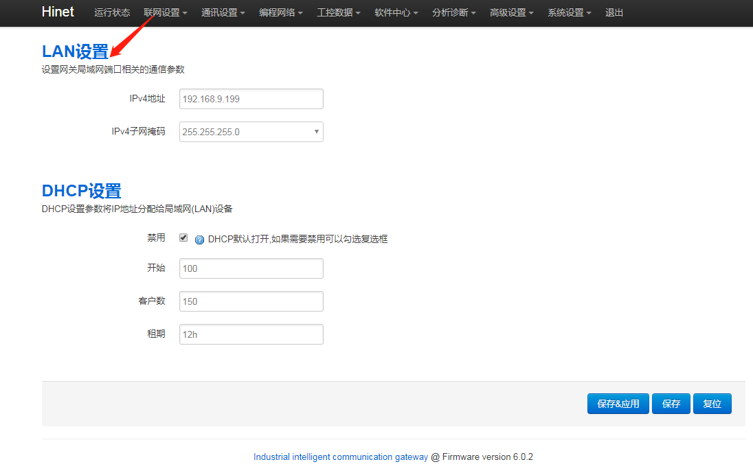 2. 网关LAN口IP与PLC的IP是否在同一网段,进网关后台,点击“通讯设置 - LAN设置”,修改网关LAN口IP,使其与PLC的IP处于同网段。